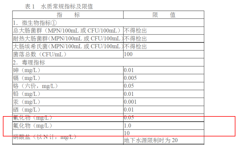 因此國家對含氟廢水的排放和生活引用水的最高含氟量有嚴格標準,根據(jù)《污水排入城鎮(zhèn)下水道水質(zhì)標準》(GB/T31962-2015)A 級標準,廢水排放氟離子應(yīng)小于 20mg/L,根據(jù)《生活飲用水衛(wèi)生標準》(GB5749-2006),飲用水中氟離子不得高于 1mg/L。