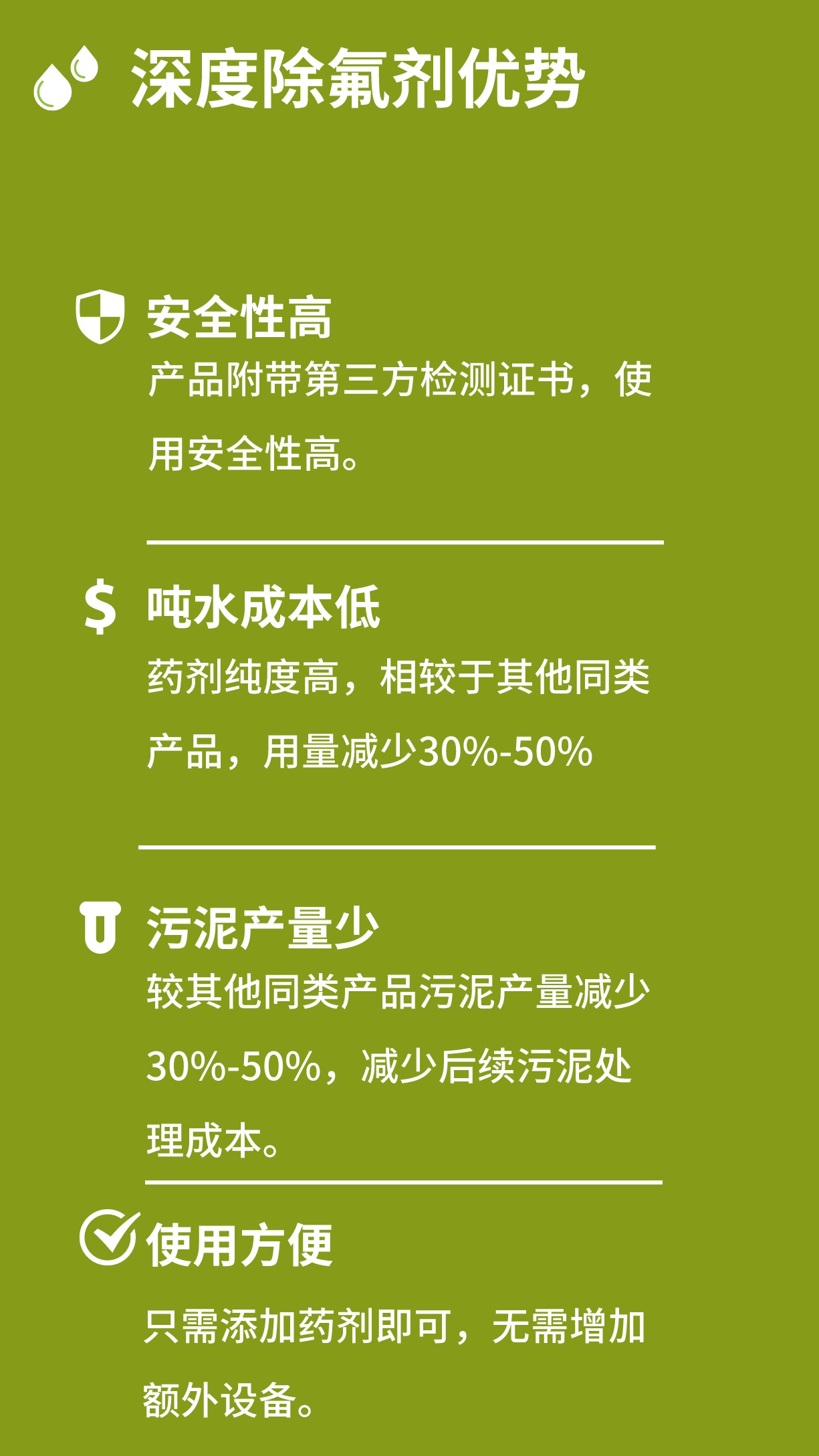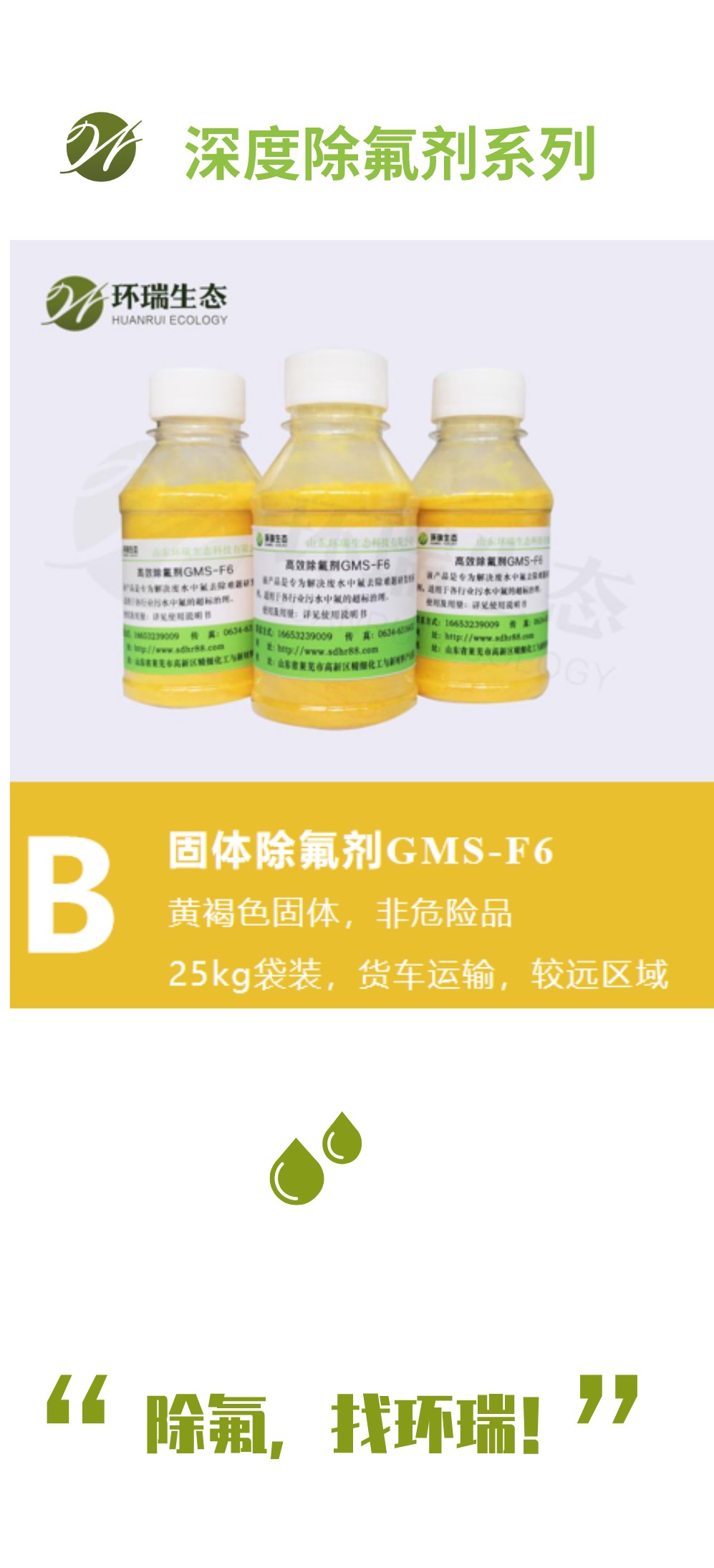 選除氟劑,就選環(huán)瑞生態(tài)!經(jīng)過上百家客戶、不同行業(yè)廢水的使用驗證,除氟穩(wěn)定<1mg/L,產(chǎn)品質(zhì)量有保障!