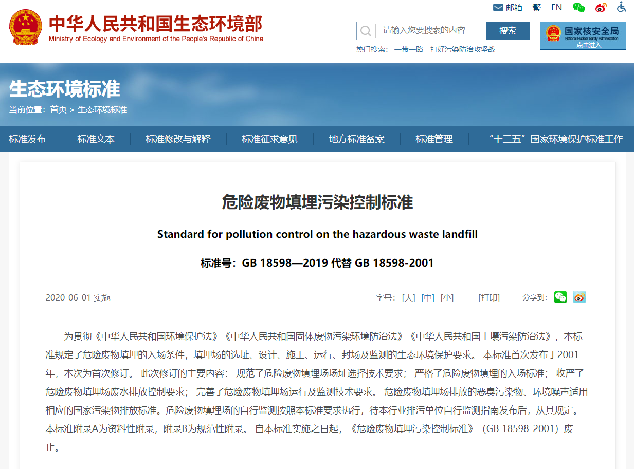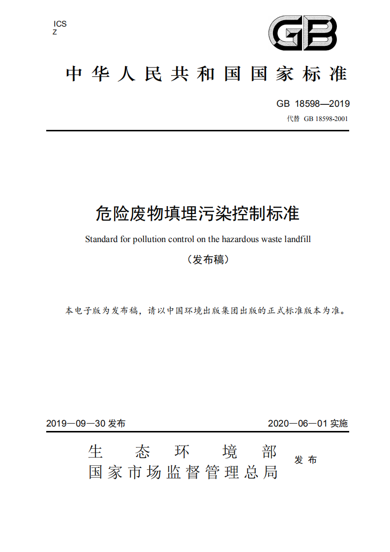 自本標準實施之日起,《危險廢物填埋污染控制標準》(GB 18598-2001)廢止。