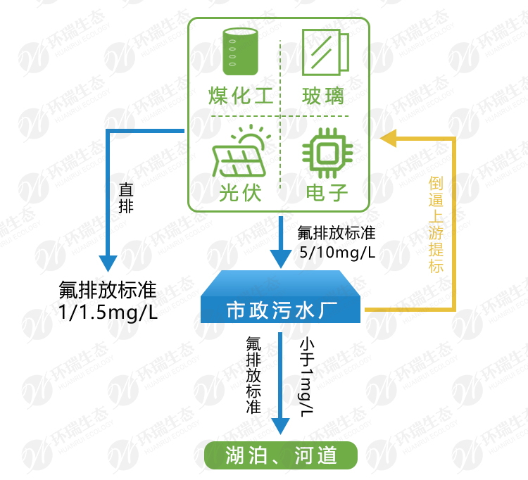 一些下游的污水處理廠能夠通過合并多股廢水的方式稀釋總排水的氟濃度,但各地區(qū)環(huán)保局紛紛對相對應(yīng)的污水處理廠提高含氟廢水的標(biāo)準(zhǔn)至小于1mg/L,進(jìn)而導(dǎo)致污水處理廠反過來限制上游的各類產(chǎn)生含氟廢水工廠只能排放比以往更低的含氟廢水。