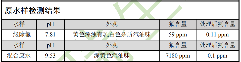 通過以上實(shí)驗(yàn)數(shù)據(jù)可以看出,使用山東環(huán)瑞生態(tài)的高效除氟劑 ,可以將含氟化物廢水中的氟化物去除到較低的濃度,達(dá)到令客戶滿意的程度。