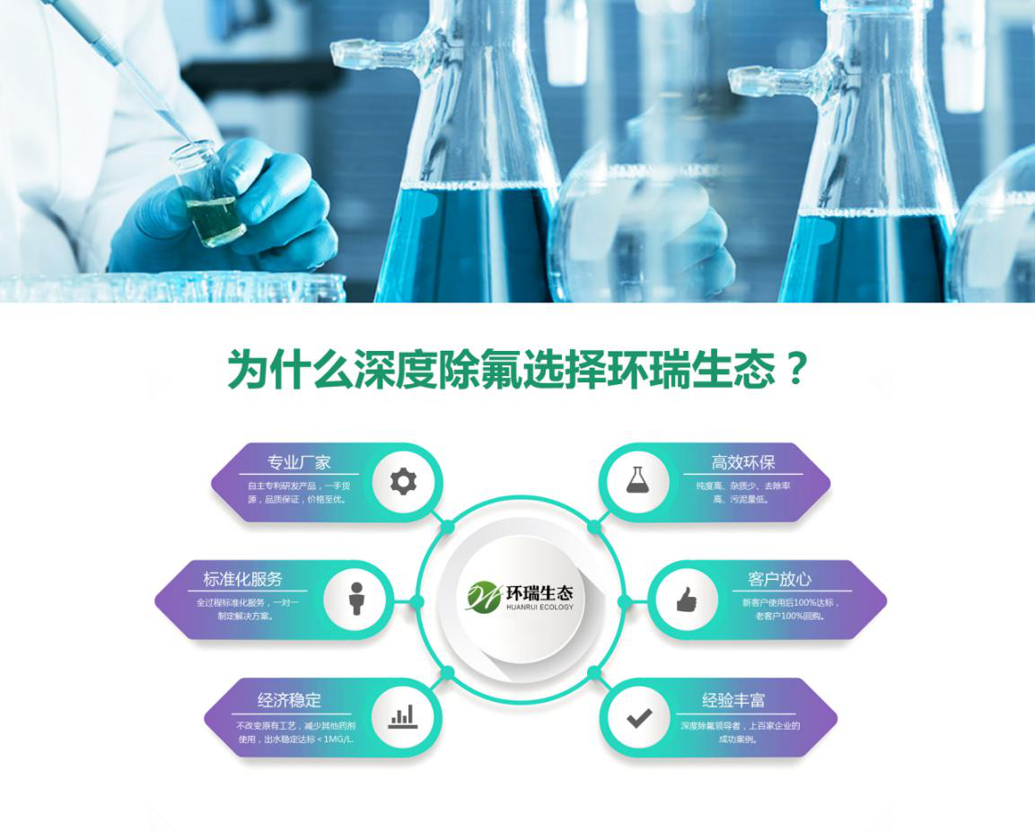 投加高效除氟劑使水中氟化物達(dá)標(biāo)排放,目前在午睡處理行業(yè)得到了廣泛運(yùn)用,山東環(huán)瑞生態(tài)研制出高效除氟劑利用有效組分高正電荷密度、中聚合度等特點(diǎn),促使其羥基位點(diǎn)快速與廢水中的F-絡(luò)合形成穩(wěn)定的配合物;同時(shí)因正電荷密度降低,加速配合物聚集沉淀,實(shí)現(xiàn)游離態(tài)氟向顆粒態(tài)氟的轉(zhuǎn)化,再經(jīng)高分子絮凝劑搭橋、捕捉等作用,快速實(shí)現(xiàn)泥水分離,達(dá)到廢水除氟目的,可針對(duì)不同濃度進(jìn)行氟的處理。